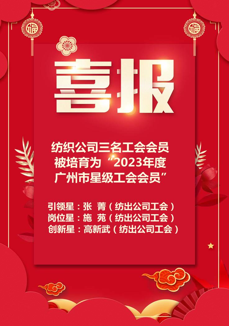 喜报:乐鱼(中国)leyu·官方网站三名工会会员被培育为“2023年度星级工会会员”