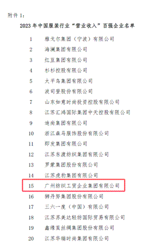 7月22日,《2023年中国服装行业百强企业》榜单发布,乐鱼(中国)leyu·官方网站连续三年登榜,位列2023年中国服装行业“营业收入”百强企业第15名!