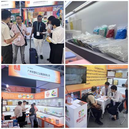 作为华南地区最早的塑料制品生产和原料贸易企业之一,塑料公司保持以原材料供应商身份亮相本届广交会。顺应可持续发展趋势,塑料公司大力推进可降解塑料、改性塑料等业务,增加环保塑料、色母、配色料(ABS) 等原料展示,强化丰富供应体系,向到会客商展现了企业品牌形象以及作为塑料产品制造商和原料供应商的卓越实力。