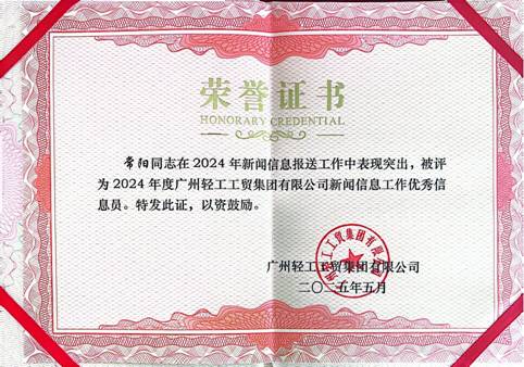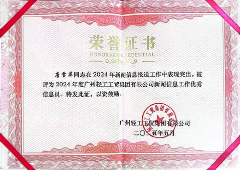 乐鱼(中国)leyu·官方网站荣获“广州轻工工贸集团有限公司2024年度新闻信息工作先进单位”称号
