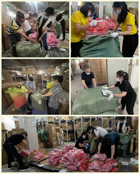 4月11日上午11时许,当乐鱼(中国)leyu·官方网站收到广州轻工集团要求定制5万件印有“我是共产党员”字样的志愿红马甲任务后,公司党委高度重视,第一时间指导利工民组建党员团员突击队和生产专班,制订详细工作计划及分工。一周内出这么大批的货是一个不小的挑战,而且马甲货源还分散在广州、佛山及浙江一些城市的仓库中。如何才能以最快速度调集货源、如何根据需求安排好每日出货量、如何精准配送到每条街道……这些现实的问题都摆在了工作专班面前。面对这些问题,利工民总经理郑力强迅速理清思路、靠前指挥,一边率领工作专班与上级部门、供应商保持密切联系,对接好各个工作环节;一边积极做好内部人员调配工作,确保高效完成出货任务。